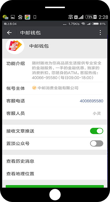 自2017年4月开始运营中邮消费金融有限公司官方双微平台,包括服务号+订阅号+官方微博,通过原创干货,行业内资讯分享,热点内容传播,H5页面互动等技术引入,保持公众号的活跃度以及达到大量增粉的目的。